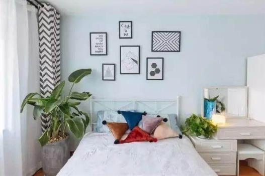 旧房改造完成之后的样子,整个房间都显得很大气,宽敞舒适的。衣柜和化妆台靠墙摆放着,衣柜几乎占据了原先的沙发墙的整片区域了,更加的大气实用,能够装很多的衣服。沙发也没有准备,而是直接在地面上铺了层黑白波浪纹的地毯,直接盘腿坐在地毯上,比坐在沙发上舒服自在多了。