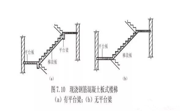 a、梁式楼梯:是指在楼梯段两侧设有斜梁,斜梁搭置在平台梁上;荷载由踏步板传给斜梁,再由斜梁传给平台梁。
